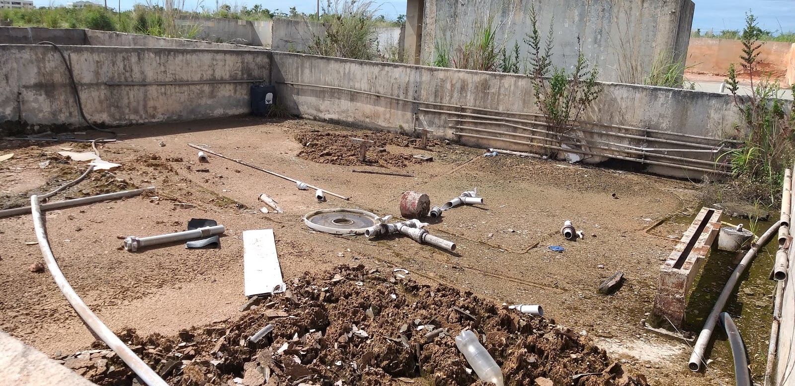 muito lixo abandonado pela construtora e várias poças de água parada que chegam