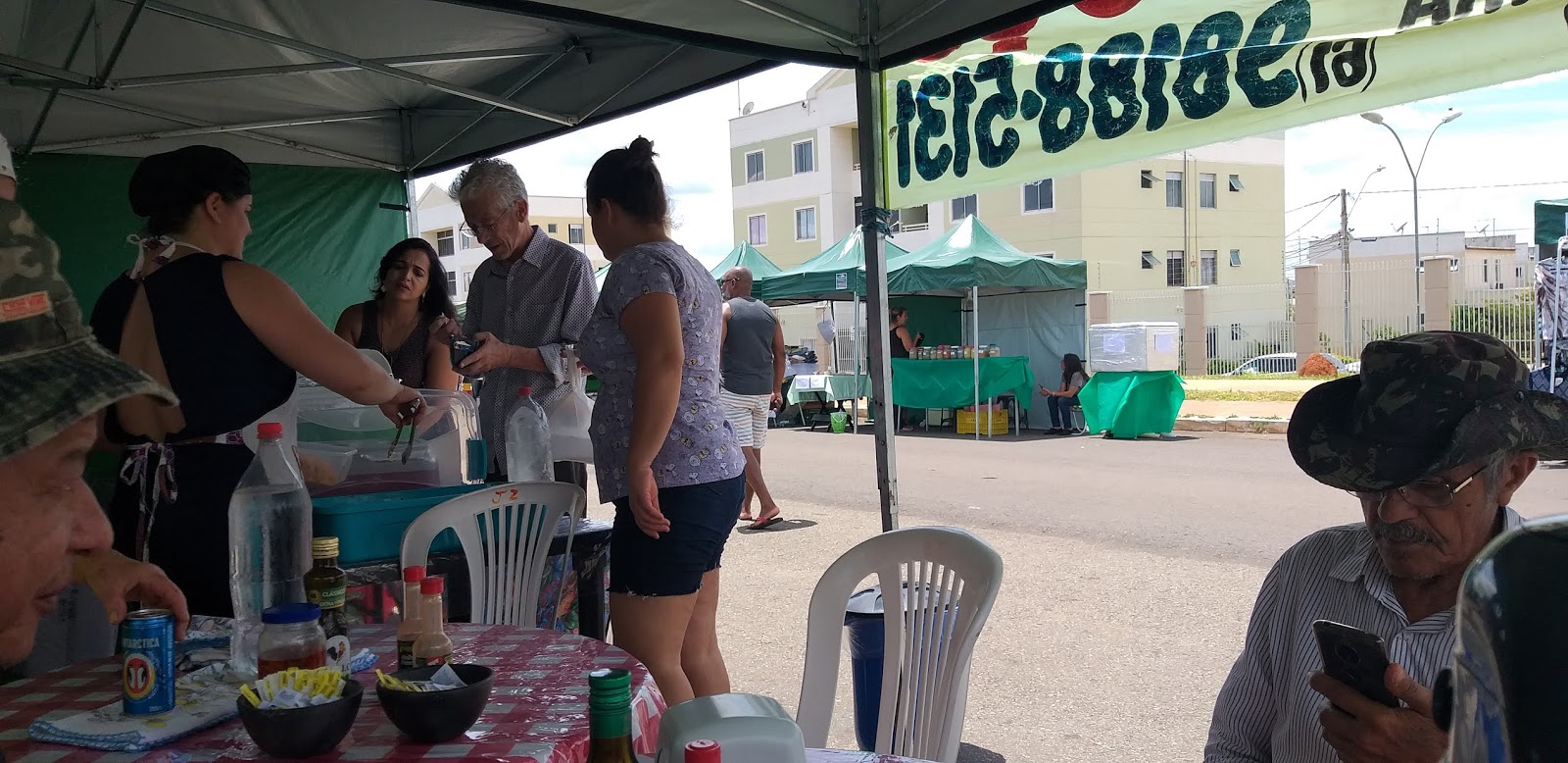 Neste último domingo, dia 10/11/2019, o Jornal Mangueiral esteve na Feira do Jardins Mangueiral em uma roda de conversa e café da manhã com os feirantes do bairro. O evento organizado pelo Jornal Mangueiral contou com o apoio dos feirantes que participaram ativamente do bate papo apresentando a feira, as experiências e as demandas da comunidade. O principal tema que pautou a conversa foi a questão da regularização de espaço para o funcionamento da feira do Jardins Mangueiral. Atualmente, a feira do bairro funciona todos os domingos, entre à Quadra 11 e a área verde conhecida como “Dente”. É um espaço aberto com muitas bancas que oferecem grande variedade de produtos, desde de comidas caseiras, produtos para o lar, roupas, legumes e frutas frescas a brinquedos, dentre outros. Os feirantes estão animados com a conquista e esperam uma regularização de um espaço para feira em breve. Para isso, já contam com o apoio da Administração do Jardim Botânico/DF.