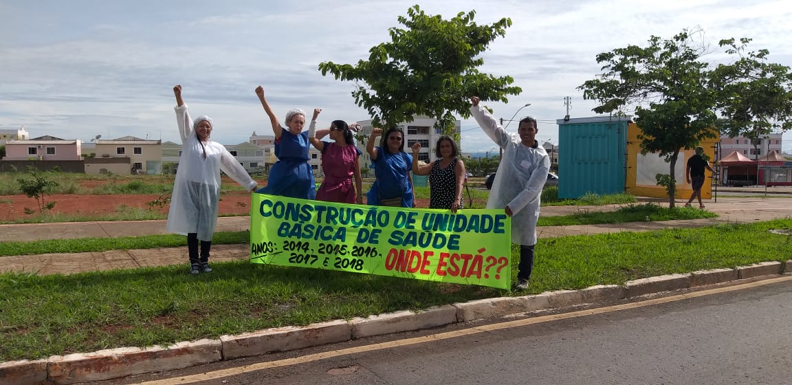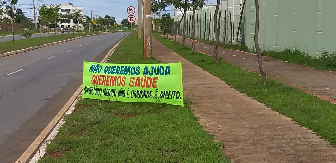 de Saúde e Escola no bairro. Os moradores se reuniram em frente à Quadra 05,