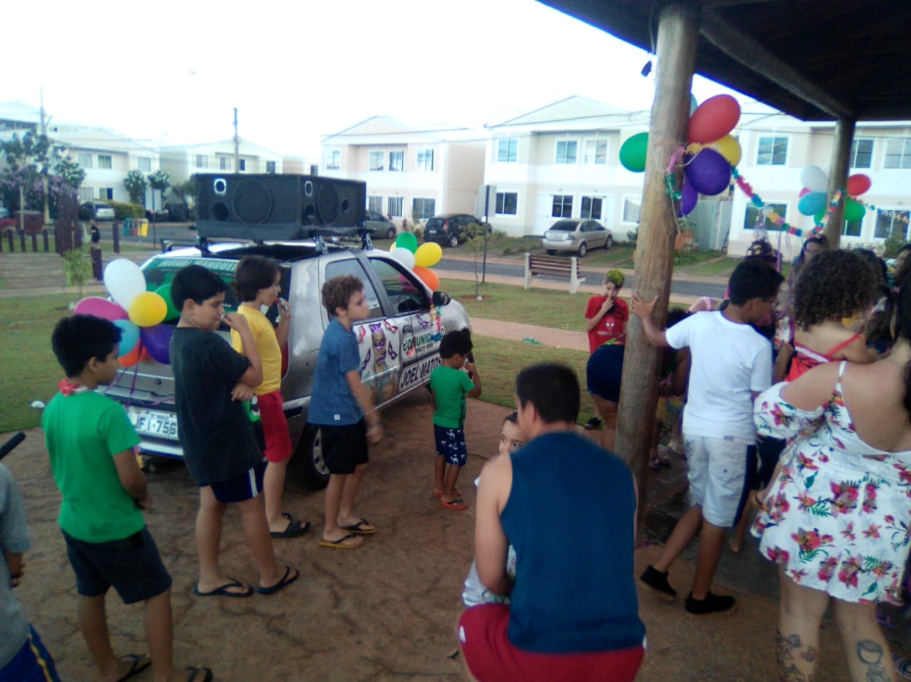 moradores, crianças e adultos. A diversão foi reforçada por carro de som que