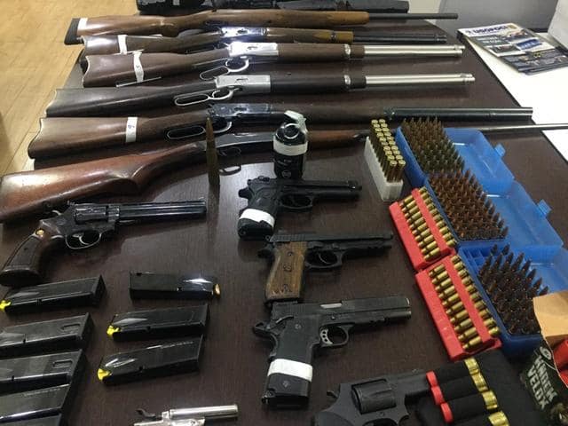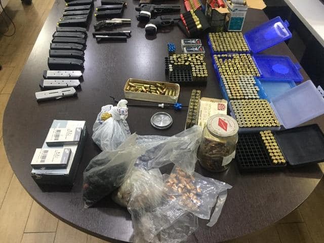 Após a prisão dele e do comprador do fuzil, os policiais do Graer chegaram até um apartamento no Setor Alto da Glória, onde foram localizados mais um fuzil, quatro carabinas, cinco pistolas, uma granada e 700 munições de diferentes calibres, incluindo Ponto 50. Dois homens que estavam no apartamento também foram presos e autuados na Central de Flagrantes junto com o policial civil e o suspeito que havia comprado o fuzil no posto.